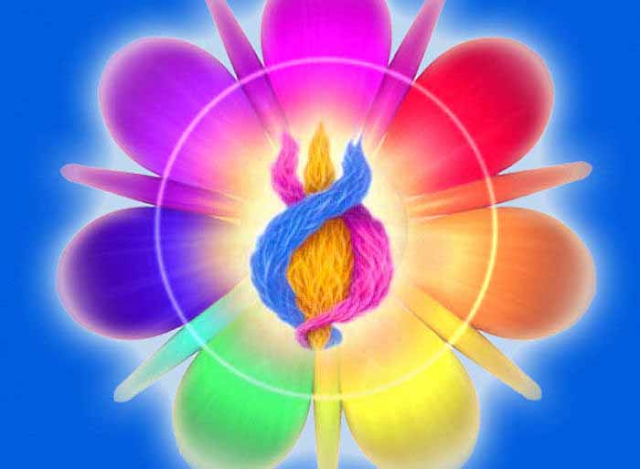 Há no coração uma chama, a chama trina, que é a força divina ardendo em nós. Essa chama contém os 3 primeiros Raios de DEUS, os básicos, a partir dos quais todos os outros deriva,.