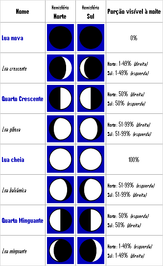 Sabemos que além das fases que conhecemos existem as fases intermediárias, entre cada uma, somando 8 faces a cada mês.